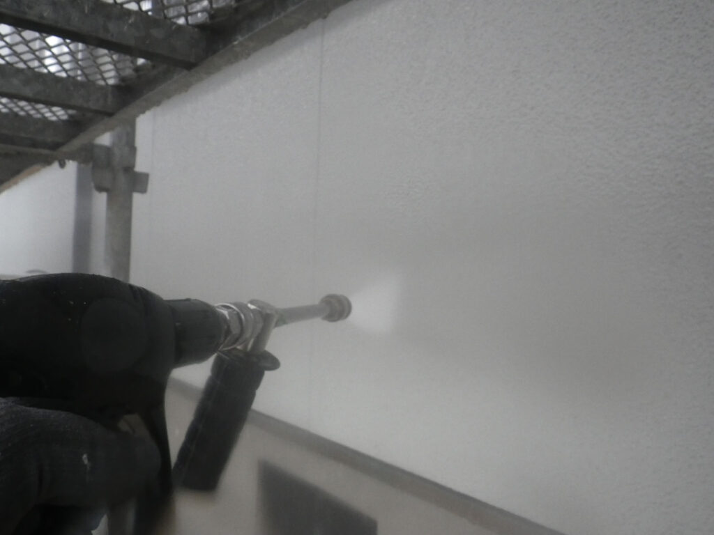 汚れ や チョーキング現象 ( 外壁 を手で触った時に 塗膜 が 粉化 し手に付着する現象)が起こっている部分をシッカリと 高圧洗浄工事 で洗い流していきます。