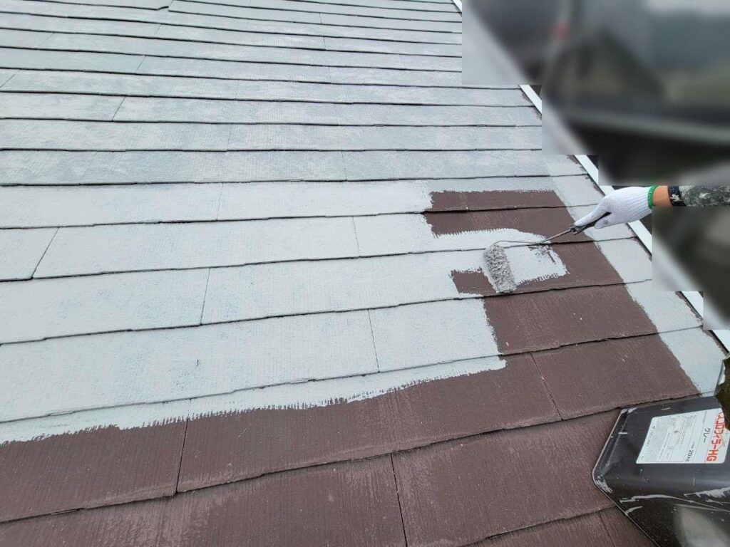 【 画像3枚目: 屋根塗装工事 下塗り 】