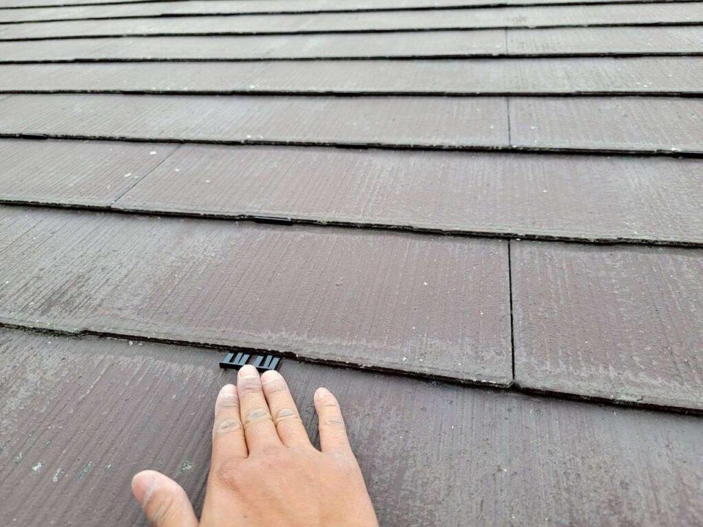 【 画像2枚目: 屋根塗装工事タスペーサー挿入 】
