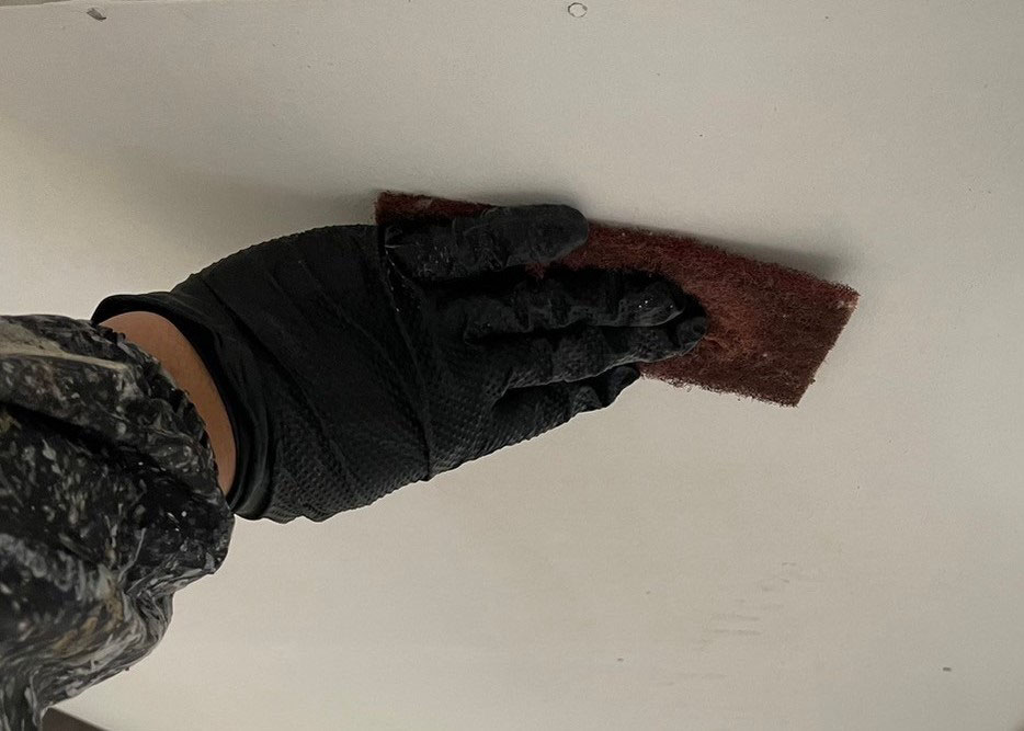 【画像1枚目: 軒天塗装工事 ケレン 】