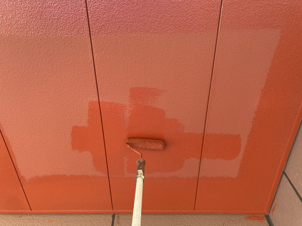 【画像3枚目: 軒天塗装工事 上塗り 1回目】