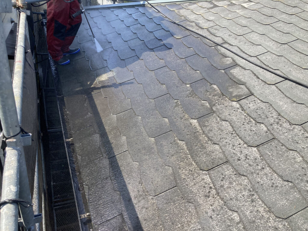 外壁塗装や屋根塗装の前に必ず行う工程の一つが「高圧洗浄工事」です。