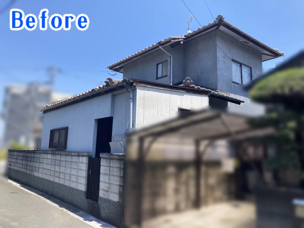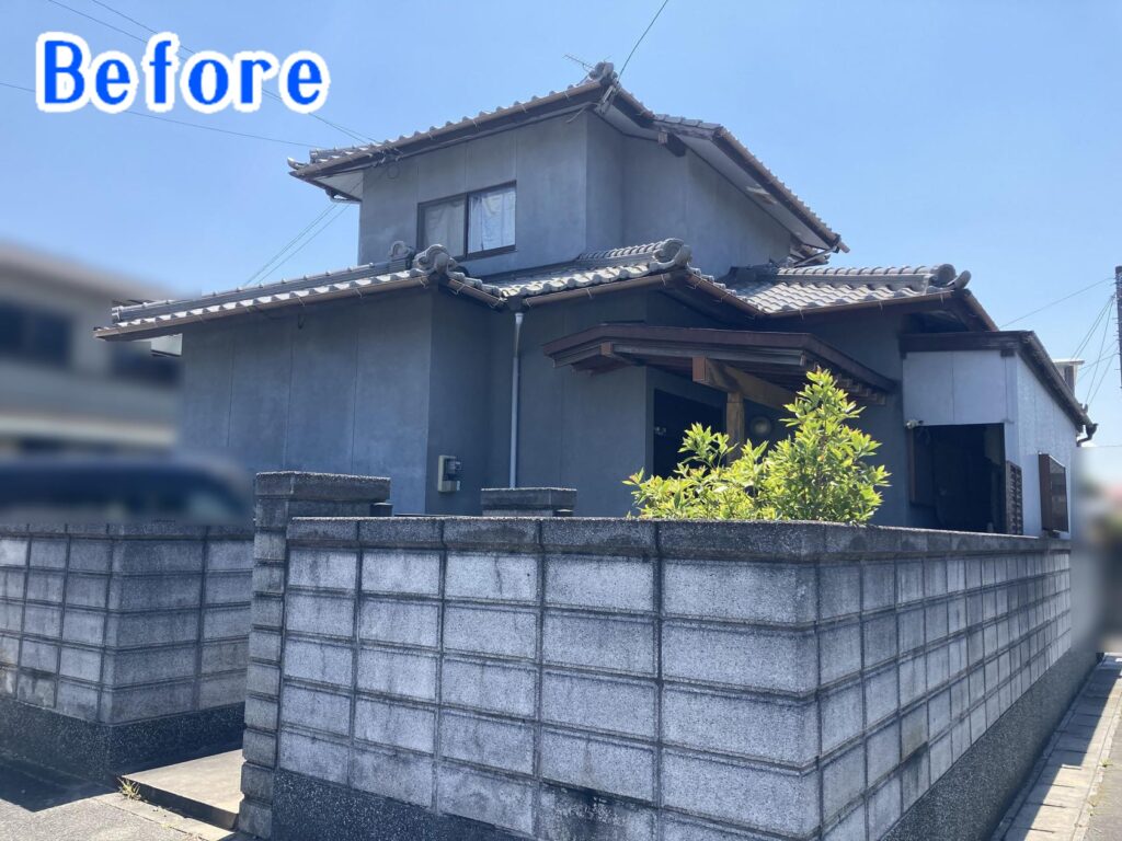 塗装前の外壁は、全体的に色あせが進み、少し暗い印象になっていました。
