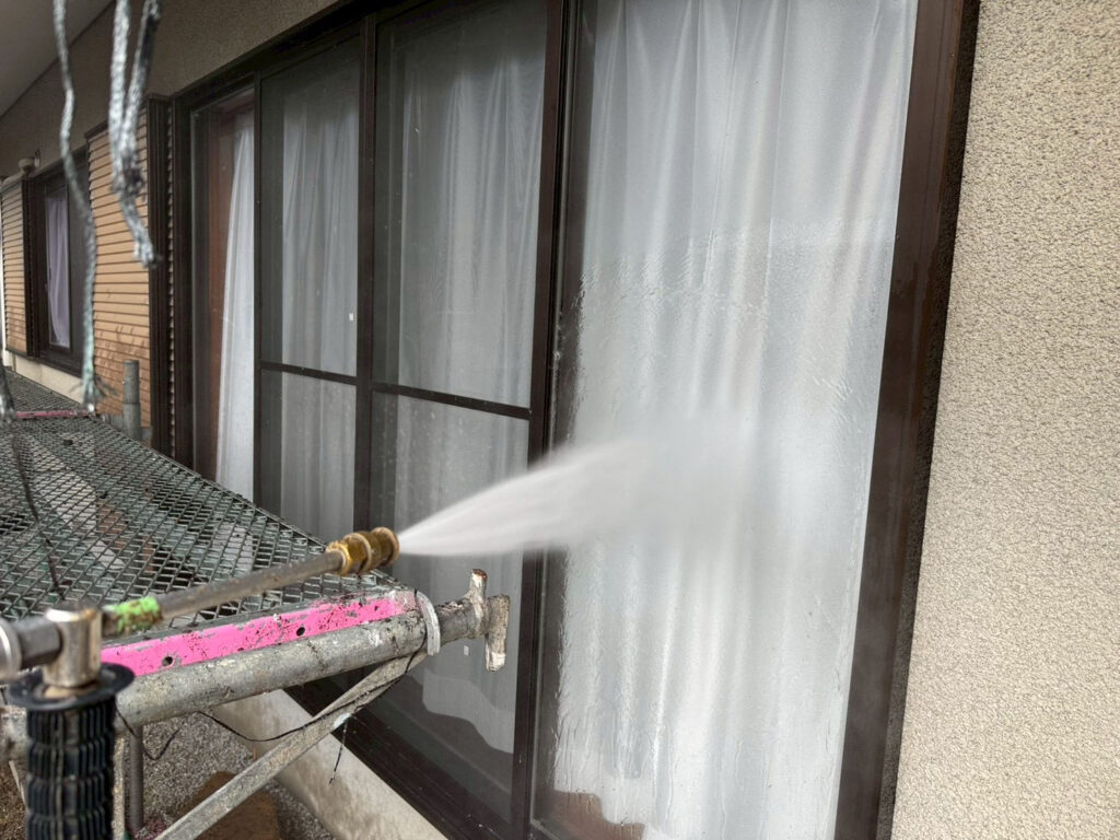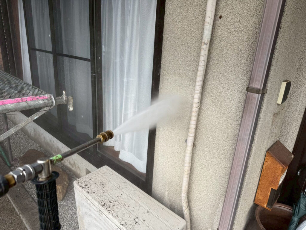 高圧洗浄は、塗装後には見えなくなる工程です。