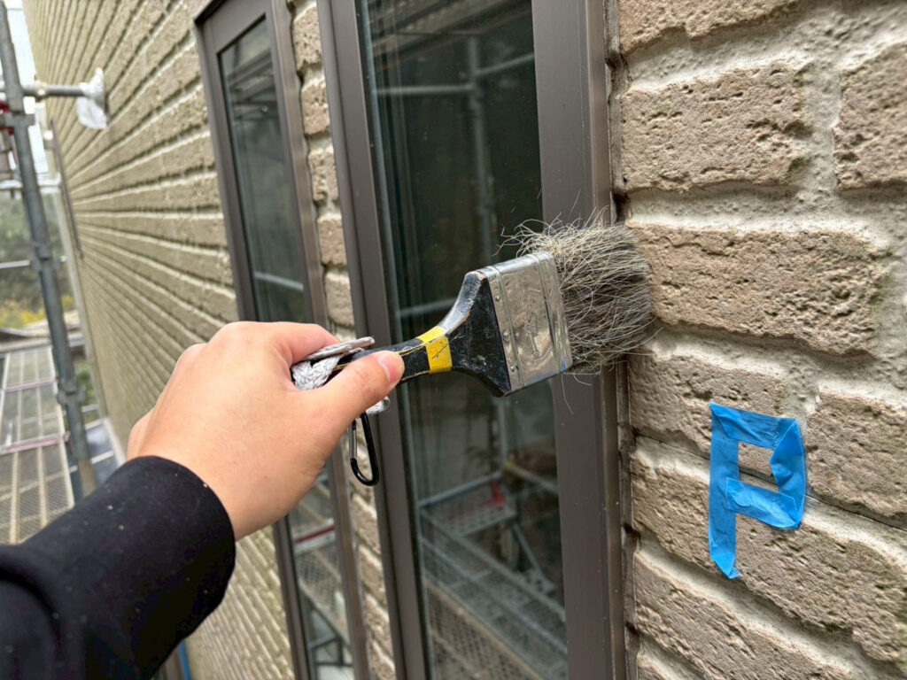 清掃後、専用のプライマー(接着剤の役割)を塗布します。