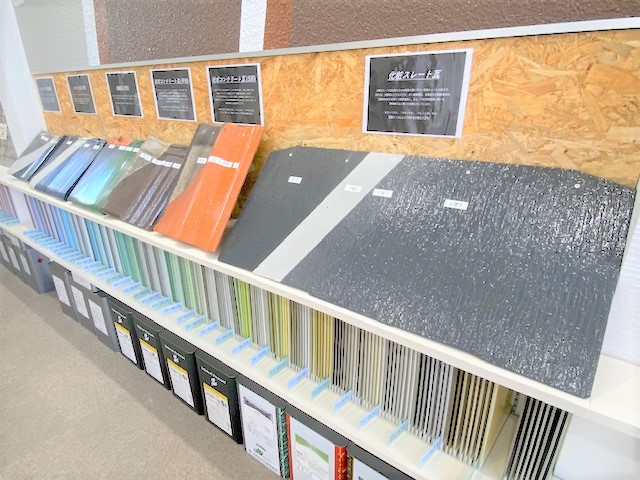 弊社の ショールーム では様々な 屋根素材 を 塗装 したものを展示しております。
