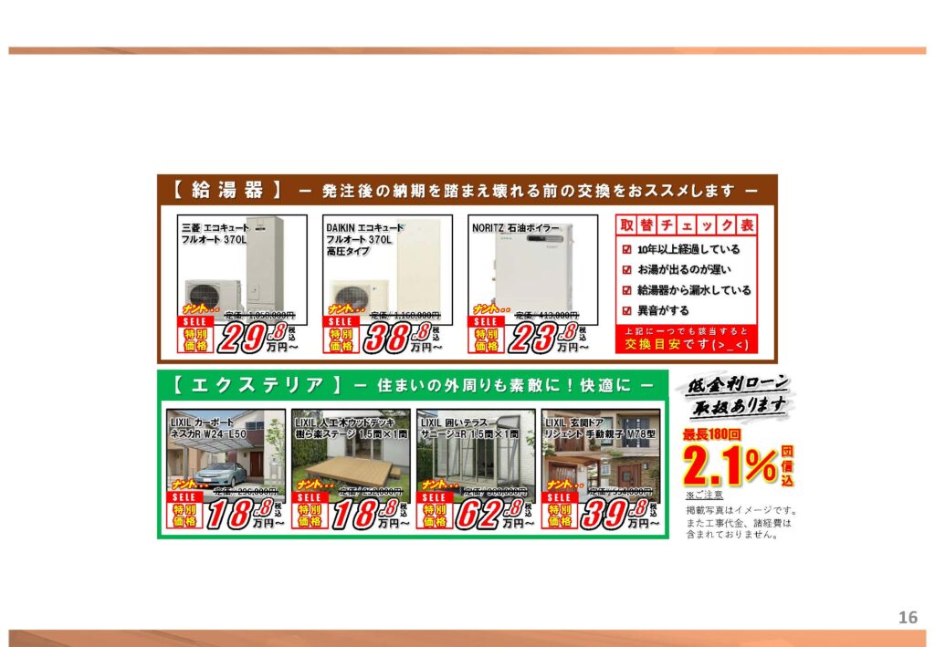 今日は、当社で取り扱っているリフォームメニューの中から、特にご相談の多い 給湯器 と エクステリア についてご紹介いたします。